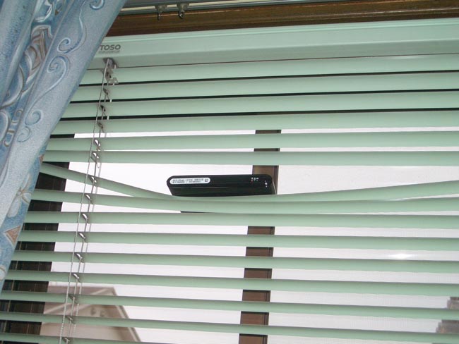 これ、何してるか分かりますか?ブラインドの上に置いてます。