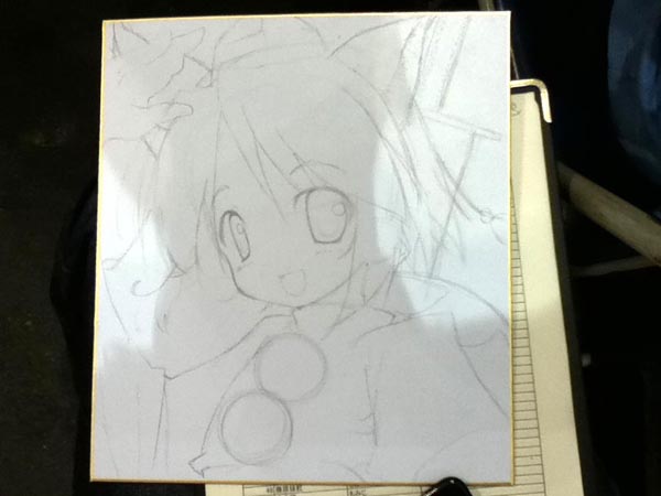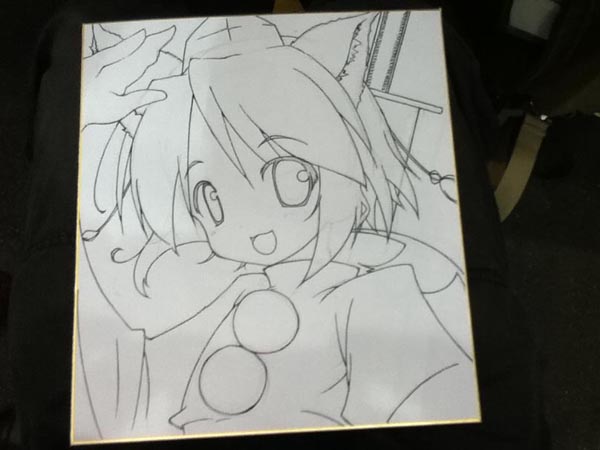 文のイラスト、写真撮るのすっかり忘れてたのでもみもみの写真をば。とりあえず、まず下書きから入ります。これにだいたい30~40分ほど。