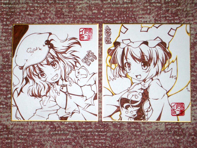 ミニ色紙2枚描きました。にとりと藍。2枚なので先着2名様でぇございます。スペースには出さないので、希望される方は声かけてやってください。合言葉は「イラストマラソン」です。