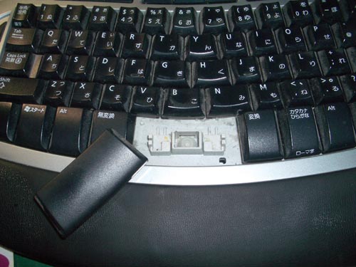 ■無線のキーボードを使っていると、電池がなくなってくると感度が悪くなります。案の定文字を打っても反応しないのでナナメ45度にチョップを食らわしたらスペースキーが吹っ飛びました。