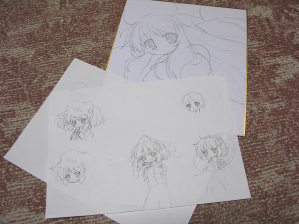 先週に引き続き今週も日曜日は合宿でございます。金曜からの体調不良が尾を引いててなかなか本調子といきませんでした。それでもカット用イラストとあやしげな色紙下書きを1枚描けました。