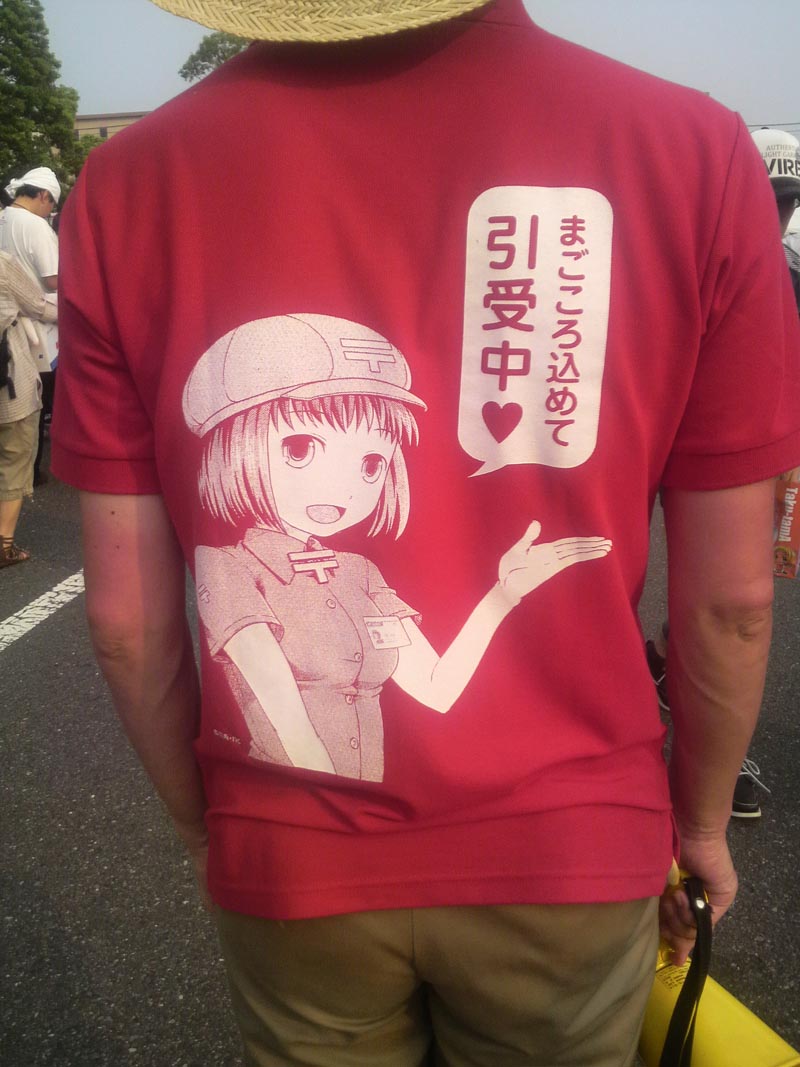 10:30 荷物の再受け渡しが開始。早速行くと会場外に移動しており、受付もゆうパックの人ではなくなぜか日通の人。炎天下に荷物を置いていたこともあり荷物があつあつほかほか。金属製のフラスコなんか火傷しそうなくらい熱かった。値札も残りの頒布物を手に入り、ようやくスペースが本格起動。
