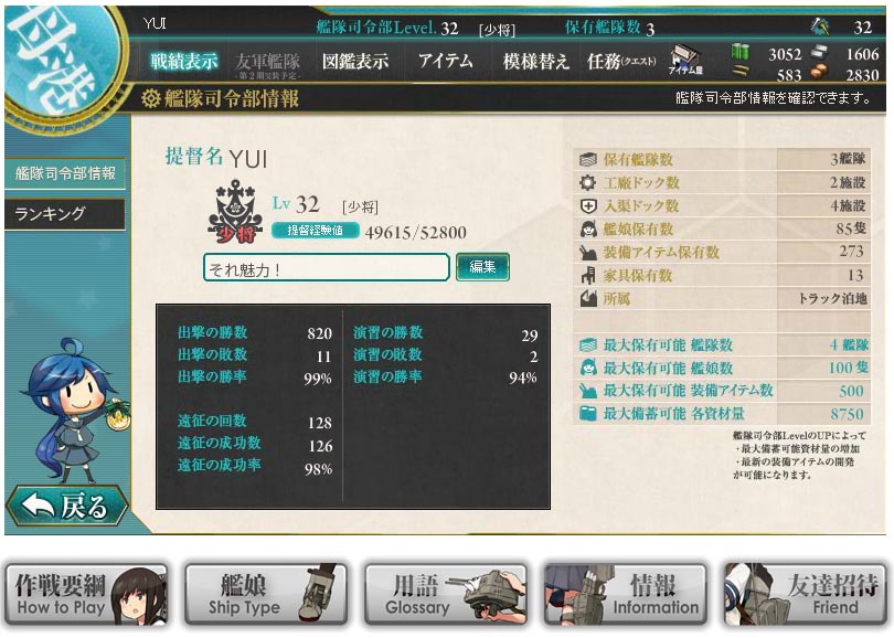 キラキラ状態で出撃してやっとこさボス潜水艦を初撃破。ゲージも半分くらい削れました。あと2回くらい撃破すればいけるかも?それにしても赤城さん、うわさに違わぬ大飯食らい。中破でもしようものなら大量の鋼材を食って思いっきり寝るので今は軽空母で出撃中。。