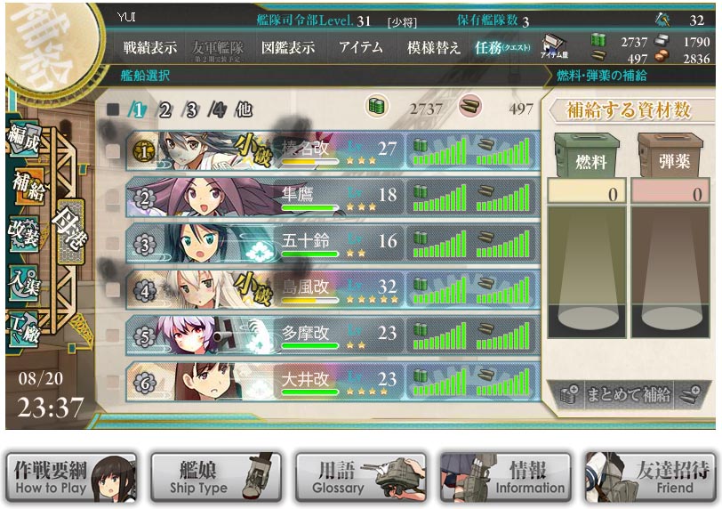 ところで、最近21時以降になるとエラー娘とよくお会いします。戦闘終了時にエラー娘が出てきてどうなるかと思ったら、戦闘自体はなかったことにはされず勝手に帰投してました。