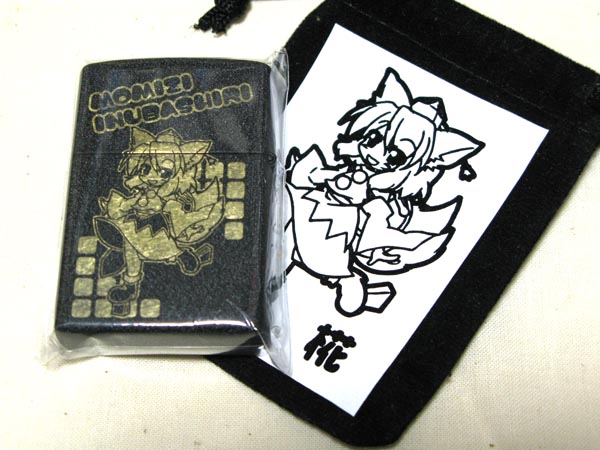 アフターイベントの救済オークションに出品する予定のアンティークブロンズカラーの「もみじライター」です。出品用に製作したもみじデザインの収納用ポチ袋付きです!