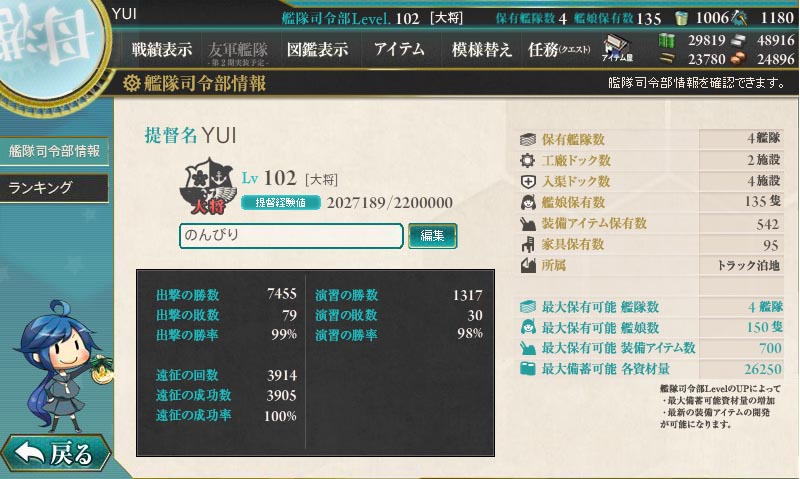 ボス到達率 16/24(約67%)・・・まあまあ。なんとなく疲労が関係してたような。