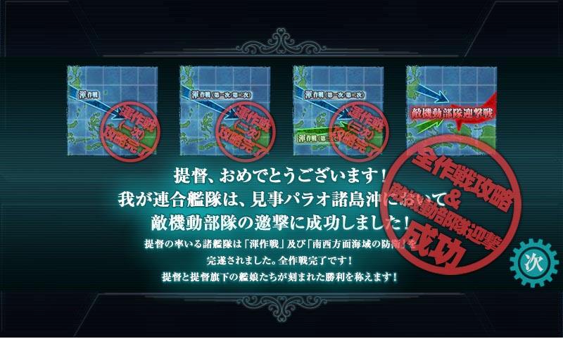 2回目までは水上、3回目以降は機動部隊に変更。4回目以降からは決戦支援艦隊を派遣。