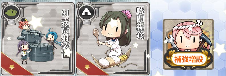 補強増設が1つ、戦闘糧食が2つ。あと91式が1つ。・・・94式くれよぉ。